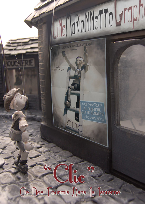With this « Entresort » format, « Clic » offers a nostalgic dive into a Black and White universe to less than two dozen privileged viewers. In the age of 3D, this intimate small form pays a tribute to silent film giants such as Georges Méliès, Buster Keaton or Charlie Chaplin. This poetic and burlesque breakaway, unwinding before your eyes, thumbs its nose at progress !