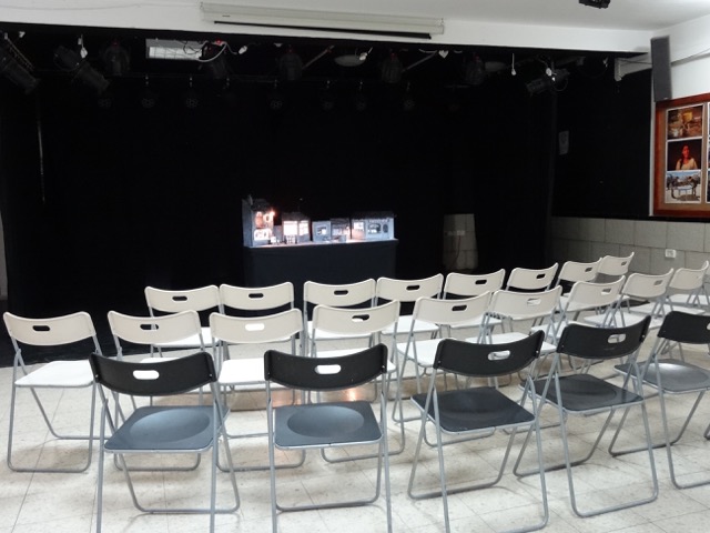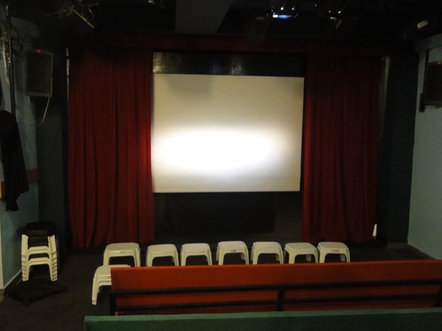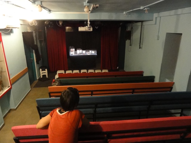 A theatre version (without the caravan) is also possible, for an audience of 50. It can be autonomous (structure, curtains, screen,...) with a transport by road or air.